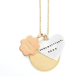 I'd Like To Give You The Moon (14kt), Inner Peace (14kt), and Unconditional Love (sterling silver)